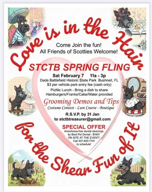 The Scottish Terrier Club of Tampa Bay event committee is excited to announce the annual Spring event: “Love is in the Hair – For the Shear Fun of It”.